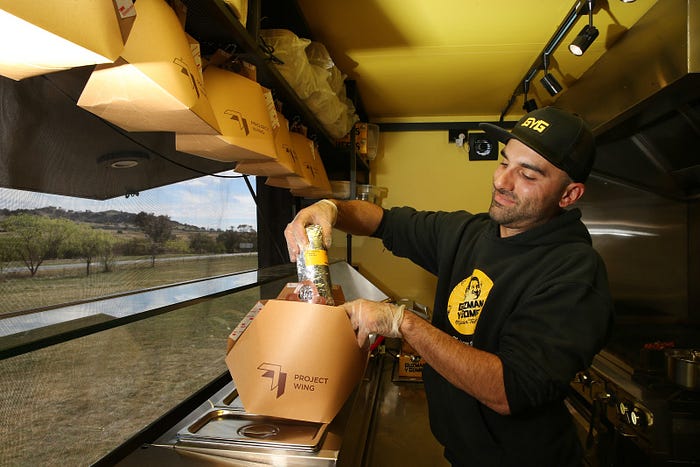 Our partners Guzman y Gomez and Chemist Warehouse will teach us what we need to do to ensure that orders are channeled to their staff smoothly and that they can easily load goods onto our delivery drones. In the case of Guzman y Gomez, who is our first delivery partner for this trial, we’ll need to make sure our technology fits in smoothly into their kitchen operations, as their staff have to juggle many orders at once to ensure that every customer is served fresh, hot food in a timely fashion. We want to learn how much notice to give them for a drone’s arrival so that they can cook, pack, and load it in one well-timed workflow.